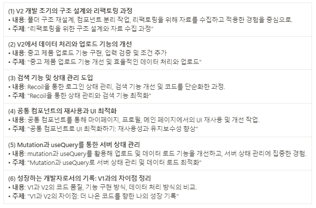 ⇒ 내가 작성한 개발 로그를 보고 블로그 포스팅 글감을 뽑아주고, 각 글감의 주제와 내용을 간단히 작성해줘
